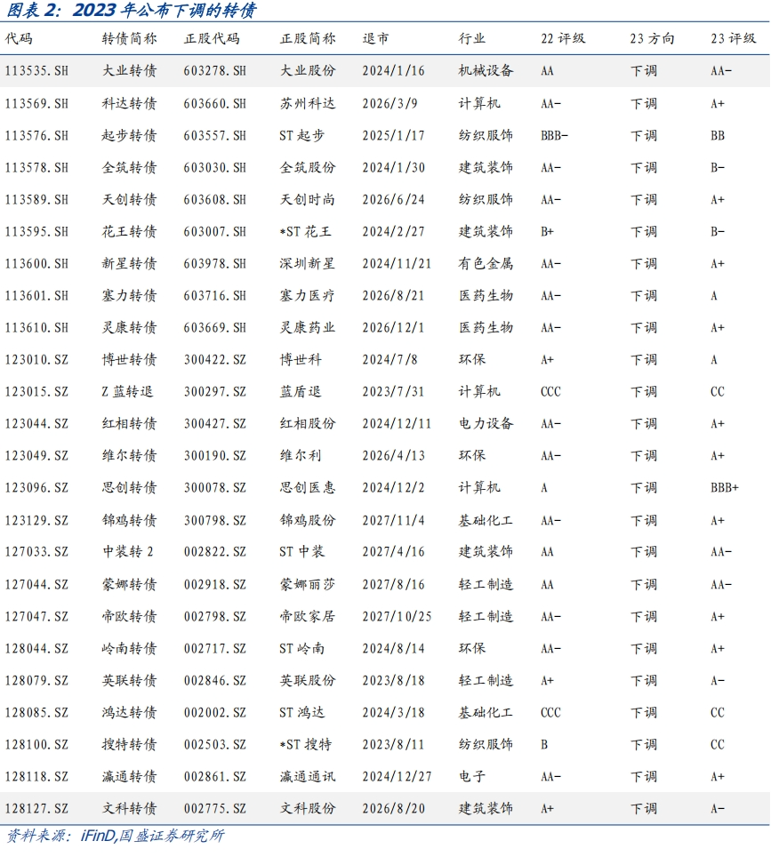 1.待测样本共348只可转债,其中2023年评级公布下调的有24只,如下表所示:
